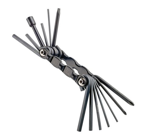 Sokoldalú szerszámkészlet dobosok számára. Inches és metrikus imbuszkulcsokat, különféle csavarhúzókat és hangolókulcsot tartalmaz.