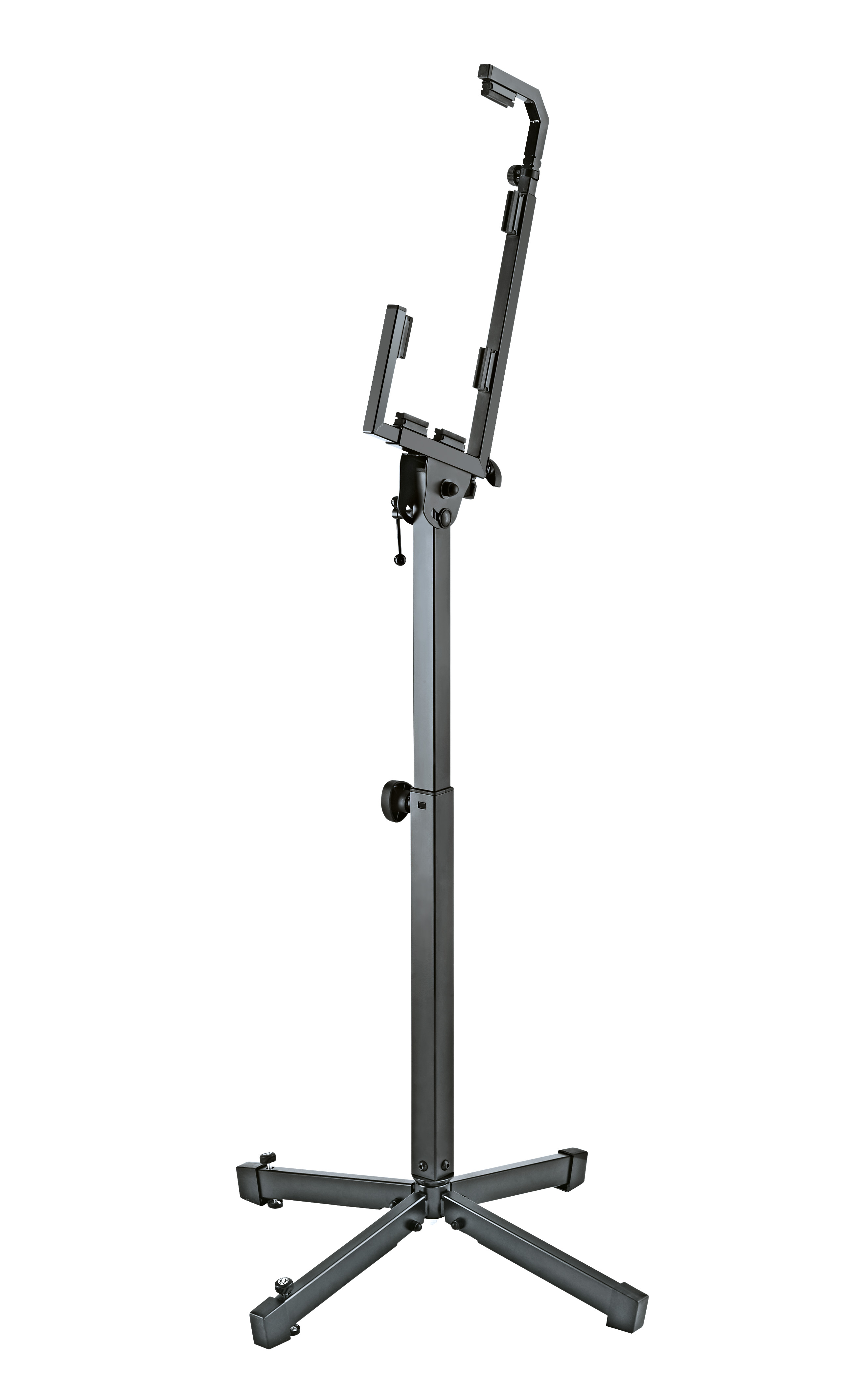 Ideális állvány harmonikások számára. Praktikus a hát túlterhelésének megakadályozása érdekében és hasznos a zenésznek játék közben. A stabil négylábú konstrukció magassága állítható, szállításkor összecsukható. A kényelmesen kezelhető magasságállító csavar 730-1135 mm közötti beállítást tesz lehetővé. A dőlésszög +/- 22°-ban állítható, optimális játékpozíciót biztosít. A tartóelem mélysége 135-250 mm, magassága 380-585 mm között szabályozható. Az állvány minden szabványos harmonikához használható.