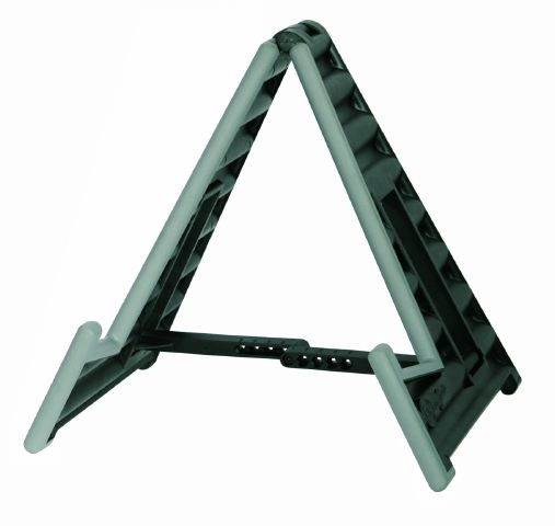 Elektromos gitárhoz használható kivételesen könnyű állvány. A kiváló minőségű műanyag hullámlemezből készült konstrukció könnyű és stabil. A nyitás és zárás egyetlen kézmozdulattal elvégezhető. A tartóelemek éle puha műanyaggal burkolt a hangszer fényezésének védelme érdekében. Az állvány különböző méretű gitárokhoz is beállítható.