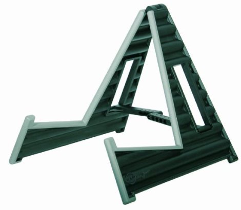 Akusztikus gitárhoz használható kivételesen könnyű állvány. A kiváló minőségű műanyag hullámlemezből készült konstrukció könnyű és stabil. A nyitás és zárás egyetlen kézmozdulattal elvégezhető. A tartóelemek éle puha műanyaggal burkolt a hangszer fényezésének védelme érdekében. Az állvány különböző méretű gitárokhoz is beállítható, csellóhoz, bendzsóhoz, kürthöz is használható.