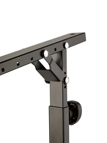 Méretes master billentyűzetet az alsó, nagyobb tartókarra lehet tenni. A felső tartókar hossza négy lépésben állítható, tehát az alsó hangszer is látható marad. A bővítő magassága a rugós reteszelő gombbal gyorsan és egyszerűen beállítható. A tíz magassági fokozat közül minden felhasználó megtalálhatja a számára legkényelmesebb megoldást. A felső tartókar pozíciója tovább optimalizálható azáltal, hogy a dőlésszög 0° (vízszintes) és 20° között szabályozható.
