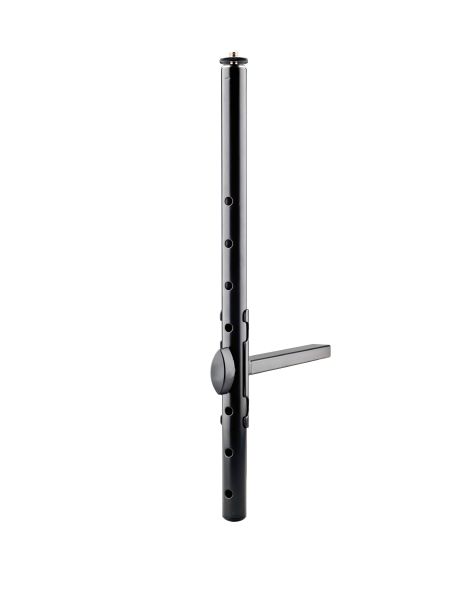 A függőleges cső magassága nyolc fokozatban állítható. A 3/8”-os menetes csatlakozóval más kiegészítőket, például gémet, gégenyakat, iPad tartót, tablet tartót lehet rögzíteni.