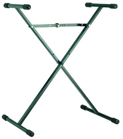 X-típusú billentyűállvány, amely egész alacsony helyzetben is rögzíthető. Gyorsan és egyszerűen felállítható, illetve összecsukható.