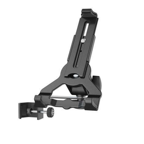 A tartó a tokkal együtt 20 mm vastagságú tableteket is képes fogadni. A túlnyúló szorító pofák gumipárnákkal rendelkeznek, biztos tartást garantálnak és a rezgésből származó nemkívánatos zajokat is csökkentik. A készüléken lévő kezelőszervek funkcióját nem korlátozzák. A tartó dönthető és forgatható, minden felhasználó saját igényei szerint állíthatja be. A csukló mozgása a szorítócsavar segítségével a lazától a szorosig állítható. A tartókar 30 mm átmérőjű állványcsőre való rögzítést tesz lehetővé.