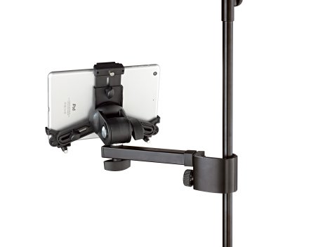 Biztos tartást ad tablet készülékek számára: az univerzális tartó a különféle méretű táblagépekhez igazítható szerszámok nélkül, és biztonságosan tartja azokat a legtöbb alkalmazásban. Akár színpadon, akár a próbateremben vagy otthon, az erős rögzítőelemnek köszönhetően a tartó bármilyen max. 30 mm átmérőjű csőre gyorsan és egyszerűen felszerelhető. Az egyenként  állítható tartókarok 163-242 mm magas és 102-189 mm széles készülékeket képesek befogadni (például iPad, iPad 9,7, iPad Pro, Amazon Fire HDX 8,9, Google Nexus 9). A tabletek vastagsága 5-11 mm lehet. Első használatkor a tartókarokat az állítócsavarokkal kell a készülék méretéhez igazítani. A továbbiakban a tabletet csak be kell pattintani a helyére, ez maximális sokoldalúságot és mobilitást eredményez. A dőlésszöget szárnyasanya segítségével szabályozhatjuk, minden felhasználó könnyen megtalálhatja a számára ideális helyzetet. A táblagépet álló vagy fekvő helyzetbe fordíthatjuk, szilárdan a helyén marad, nem kell félnünk a véletlen elfordulástól.