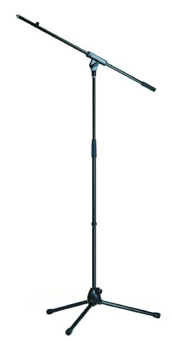 Olcsó és kiváló minőségű fém mikrofonállvány. Egymásba tolható 2 részes oszlopból, egyrészes gémből és cink öntvény lábazatból áll, behajtható hosszú lábakkal. A négyszögletes gémtartóban a gém nagy szárnyas anyával rögzíthető.