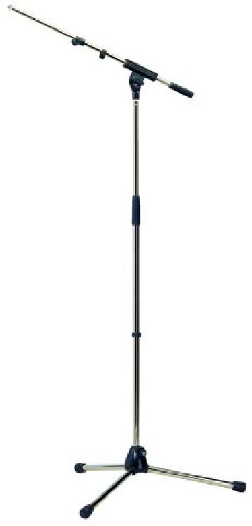 mikrofonállvány hosszú lábú, könnyen szállítható, krómozott