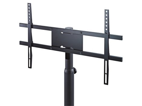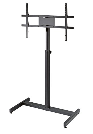 A látványos képernyő/monitor állvány legfontosabb tulajdonsága a stabilitás és könnyű kezelhetőség. Az univerzális rögzítés 42”-65”-os VESA szabvány szerinti lapos képernyők felszerelését teszi lehetővé. Két hosszanti elemet kell a képernyő hátuljára csavarozni, ezzel lehet az állványra tenni. A széles állványcsővel helyet takaríthatunk meg, mivel a kábelek elvezethetők benne. A magasság fokozatokban állítható az ergonomikus magasságállító csavarral. A lábbal a talaj egyenetlenségei kiegyenlíthetők.