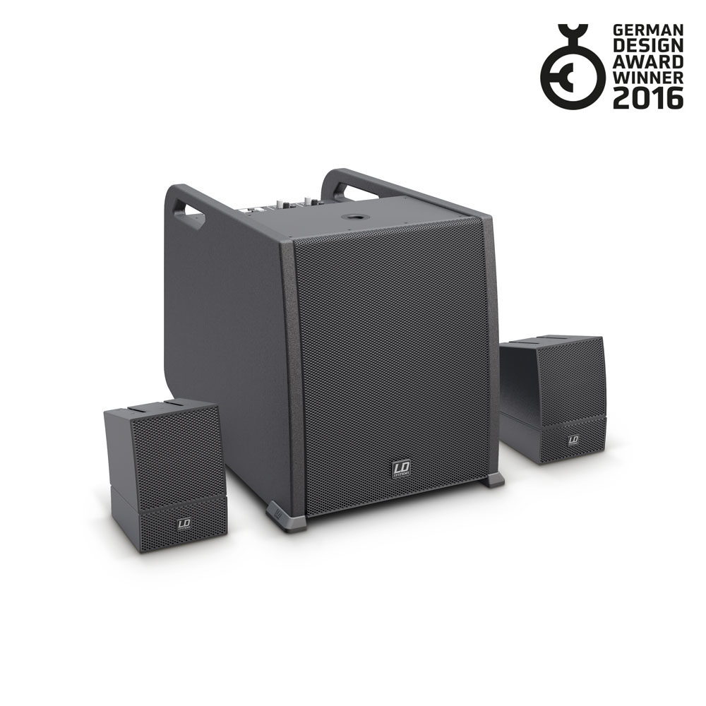 Mélynyomó csatlakozók: 1x Mic/Hi-Z (XLR/6,3 mm jack combo), 1x Mic (XLR/6,3 mm jack combo), 2x Line (XLR/6,3 mm jack combo), 3,5mm jack, 2 x Array Satellite Out (Speakon kompatibilis), Line Out (XLR), System Out (ötpólusú XLR)