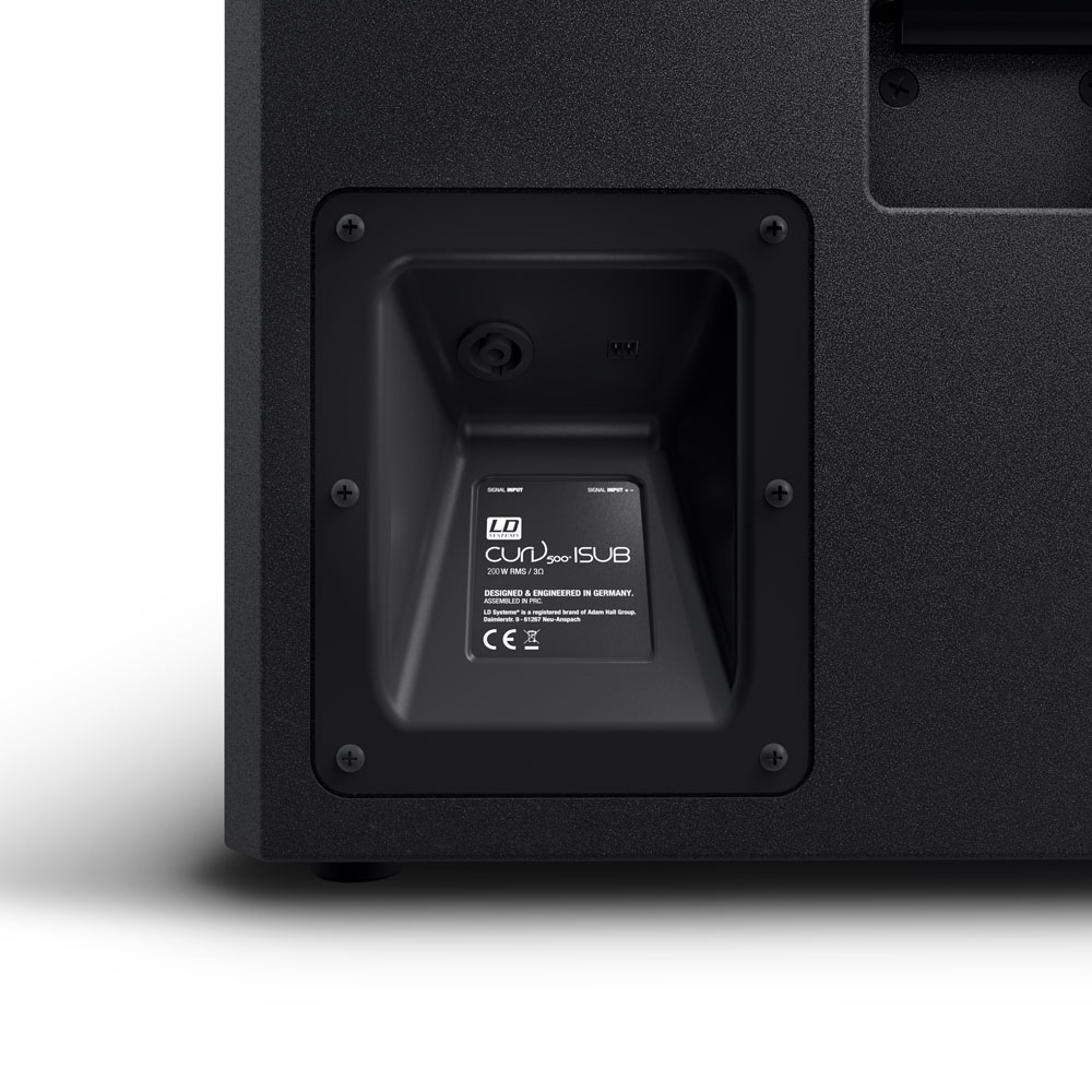 A mélynyomót a CURV 500 installációkhoz tervezték. A csekély mélységű basszus reflex ládába 10”-os mélyhangszórót építettek. 47-150 Hz közötti frekvencia átvitelével feszes, dinamikus mélyvisszaadást nyújt megfelelő ütéssel és határozottsággal, 200 W teljesítménnyel. A fekete vagy fehér színben megvásárolható elegáns láda fém hangszórórácsot kapott, speakON és csavaros terminál bemenete van, nyolc M8 menetes függesztési ponttal látták el. Az iSUB-hoz alacsony profilú fali és mennyezeti rögzítő keret és egy készlet gumiláb jár.