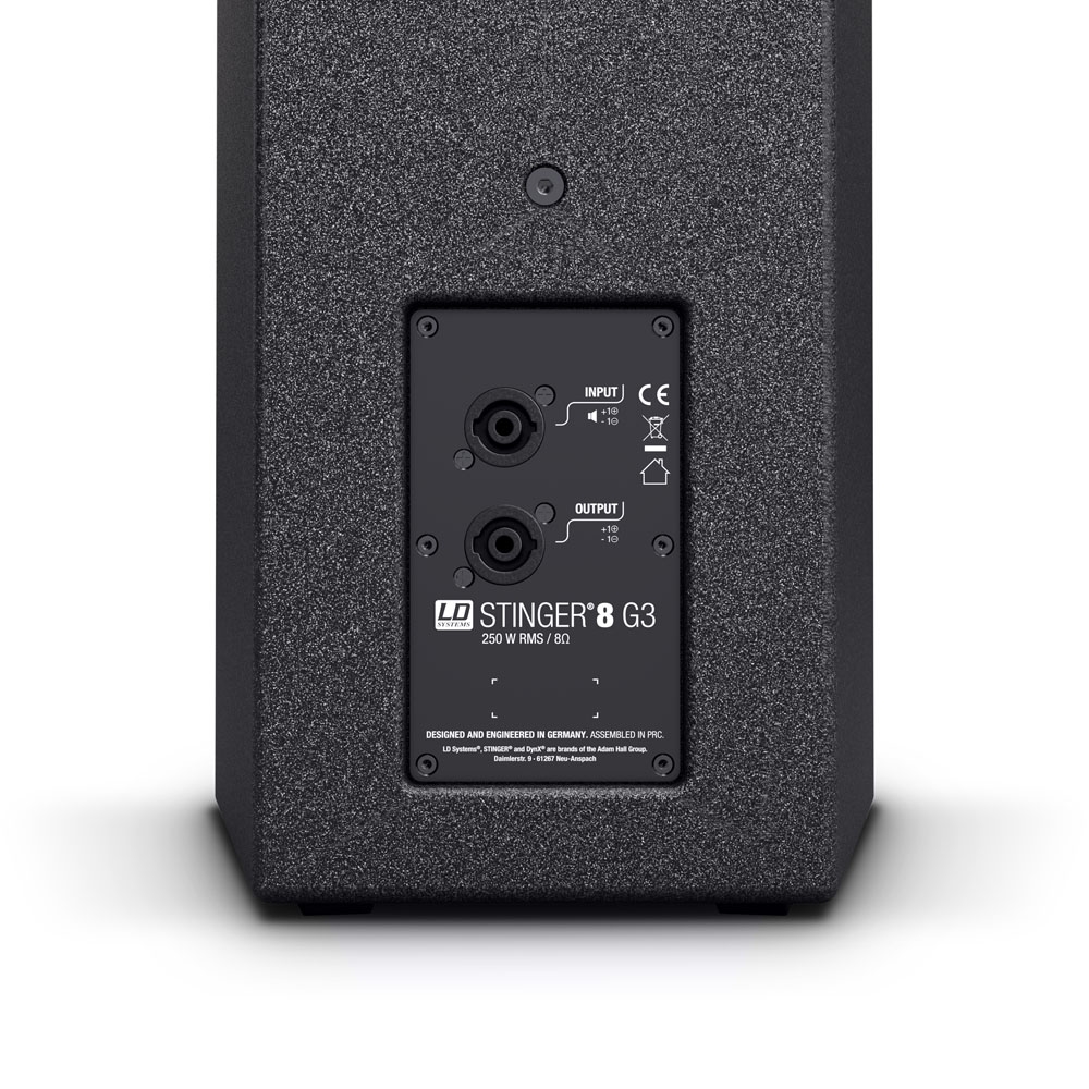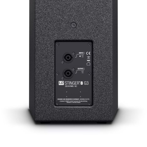 A professzionális kétutas hangsugárzó a tökéletes hosszútávú megbízhatóság jegyében készült. A többfunkciós basszus reflex láda szélessávú, szatellit és monitor alkalmazásokban, mobil és telepített PA rendszerként is üzemelhet. A Stinger® 8 G3 250 W folyamatos teljesítményt nyújt, maximális hangnyomása 118 dB.