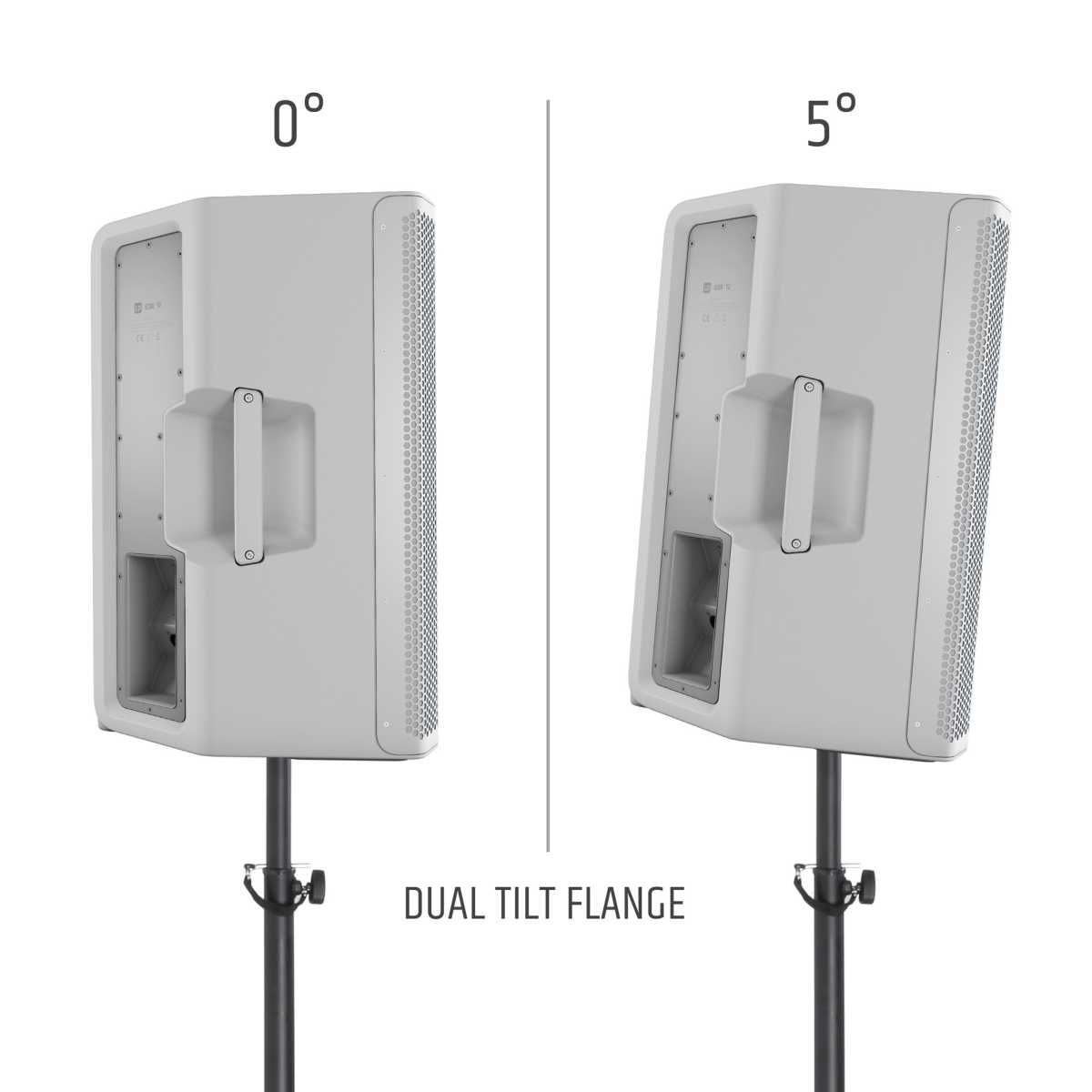 Az ütésálló hangszórórácsnak és az 55°-os dönthetőségnek köszönhetően az LD ICOA 12 kiválóan megfelel monitor hangfalként. Függőlegesen felállítva a kettős állványhüvely 0°-os és 5°-os döntést kínál, amellyel a hely akusztikai körülményeihez igazíthatjuk a rendszert.