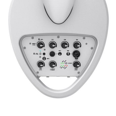 kompakt akkumulátorról működő aktív PA torony rendszer, beépített keverő és Bluetooth, fehér