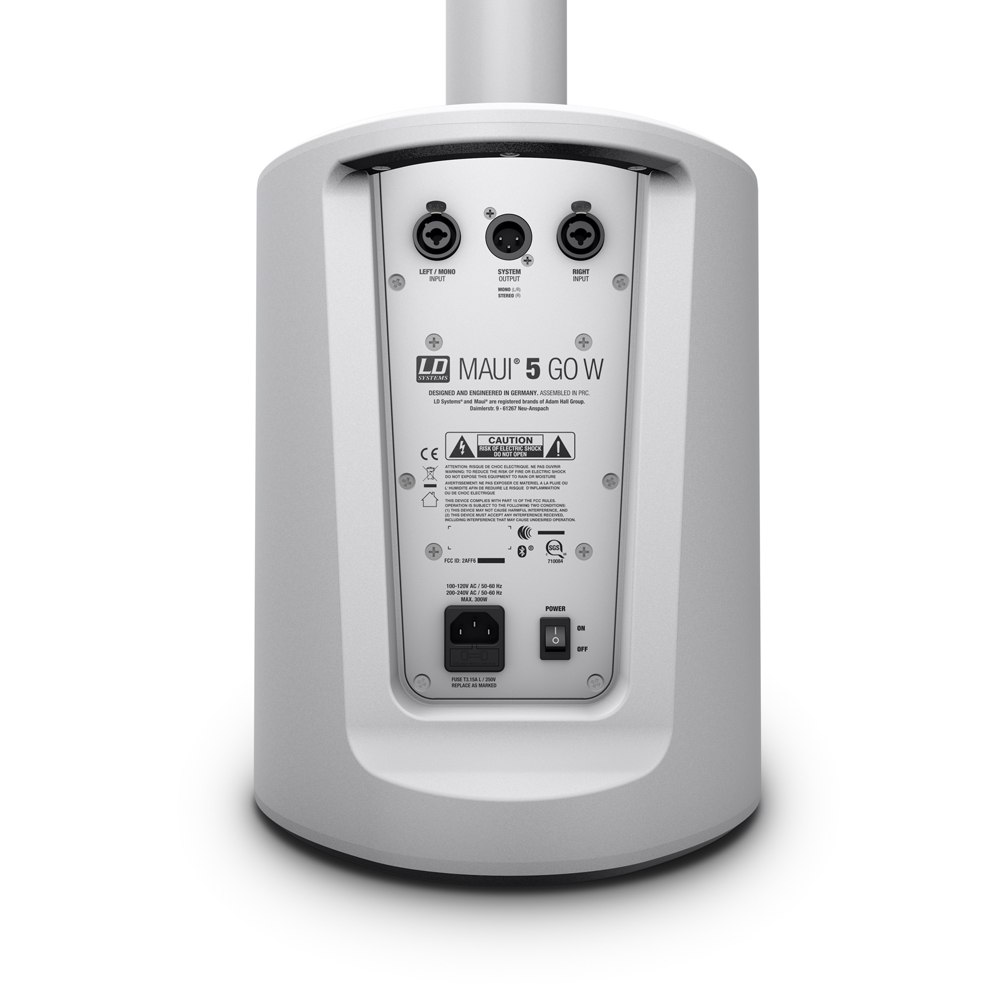 LD Systems MAUI 5 GO W – hordozható, lítium-ion akkumulátorról működő torony PA rendszer, fehér
