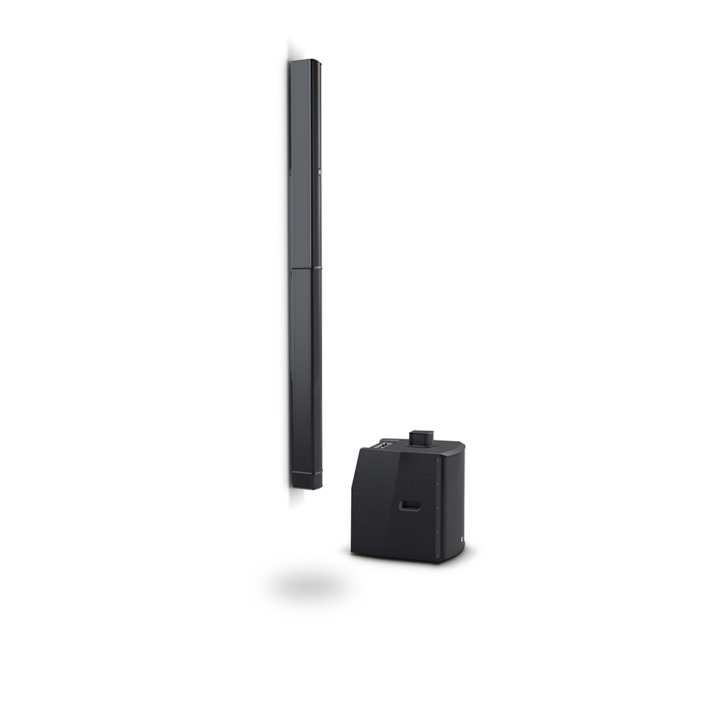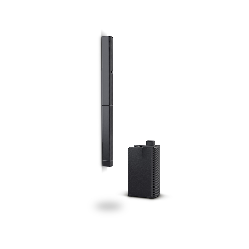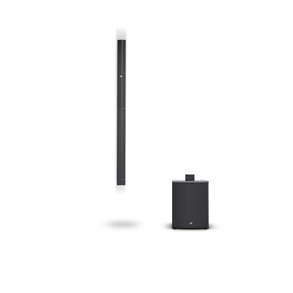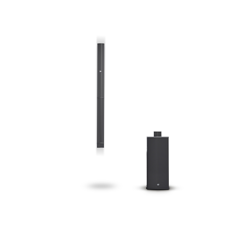 A készlet tartalmaz továbbá két adaptert a sokpólusú rendszercsatlakozókhoz, amelyekkel összefűzhető az oszlop és a mélynyomó.