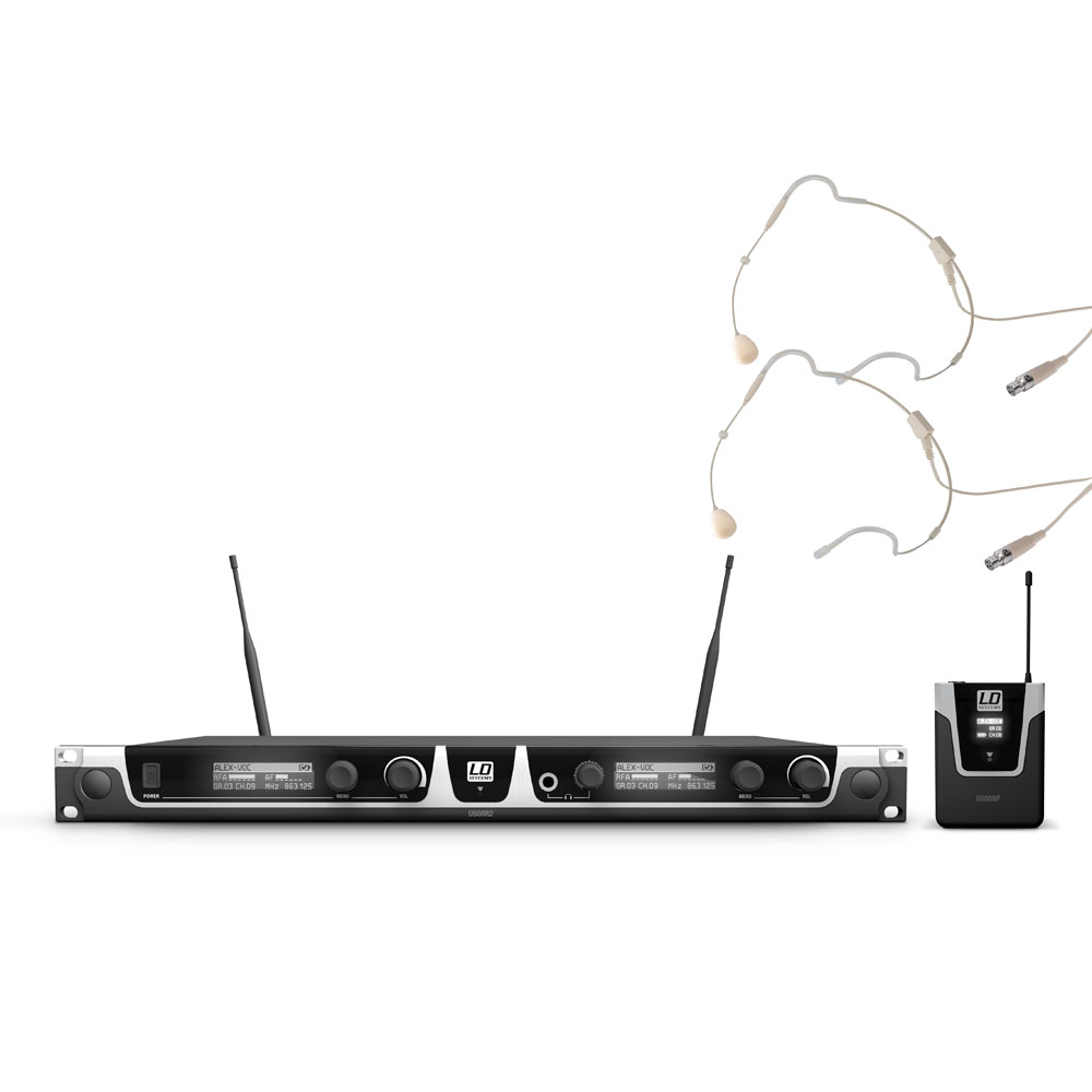 LD Systems U505 BPHH2 – dupla diversity mikrofon készlet, 2 csíptetős adóval, 2 testszínű fejmikrofonnal, 584-608 MHz