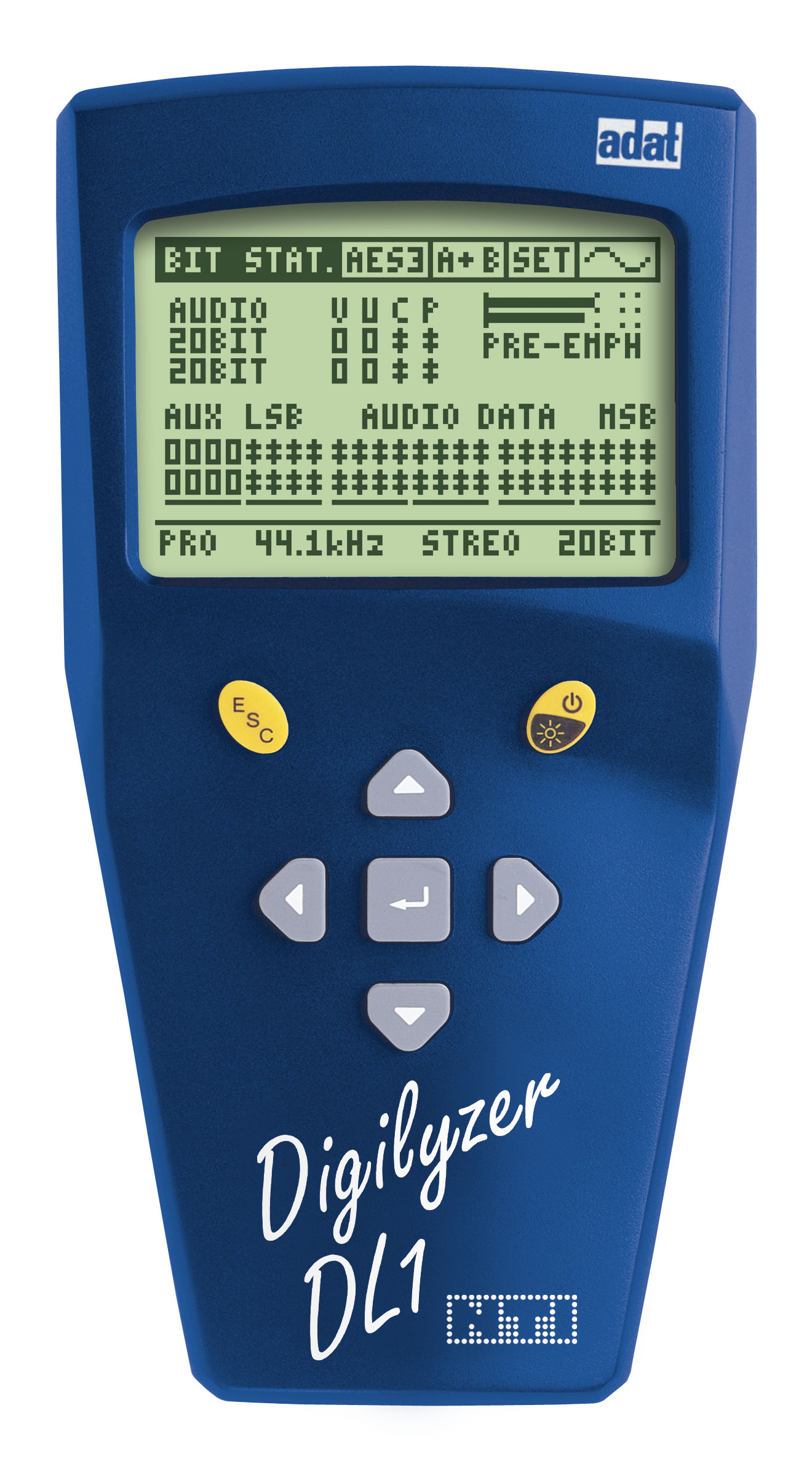 A Digilyzer DL1 egy nagy teljesítményű digitális hangelemző. A digitális audio interfészek tesztelése, felügyelete és hibaelhárítása egyszerű ezzel a kompakt eszközzel. Támogatott formátumok az AES3, S/PDIF, TOSLINK és ADAT digitális audio formátumok 96 kHz-ig terjedő mintavételezési frekvenciával.