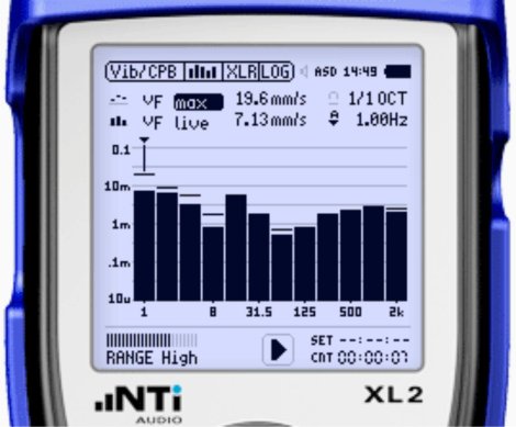 Az NTI Audio XL2 hangnyomás mérő készülékben alkalmazott technológiának köszönhetően a Vibration Meter remek megoldást kínál a rezgések vizsgálatára.