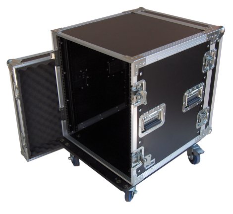 Az RO-R.. típusjelű KEREKES sorozat 12U-20U magassággal és 500 mm. mélységgel készül. A 9 mm. vastag lemezből kialakított test erős, nagy teherbírású, a napi munkára tervezett. Mozgatását a 4 süllyesztett acélfül mellett, 4 darab külön fenéklapra szerelt kerék segíti, amelyek közül kettő fékezhető. Ideális megoldás a nehéz készülékek számára is. A család minden tagja dupla falú alumínium profilokból és fekete színű műanyag bevonattal ellátott rétegelt falemezből készül. Az ajtókat lakatolható pillangózárak rögzítik, a mozgatást süllyesztett acélfülek segítik. Elöl-hátul dupla rack sínek biztosítják a készülékek stabil, biztonságos rögzítését. A készülékek rackbe építéséhez szükséges csavarkészletből néhány garnitúra, mindig része az alapcsomagnak.