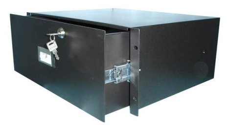 19" 4u 350 mm, rack fiók, fekete, kulccsal zárható