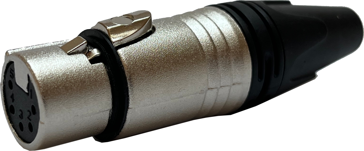 5 pólusú XLR aljzat egyenes, lengő, aranyozott érintkező, fekete ház