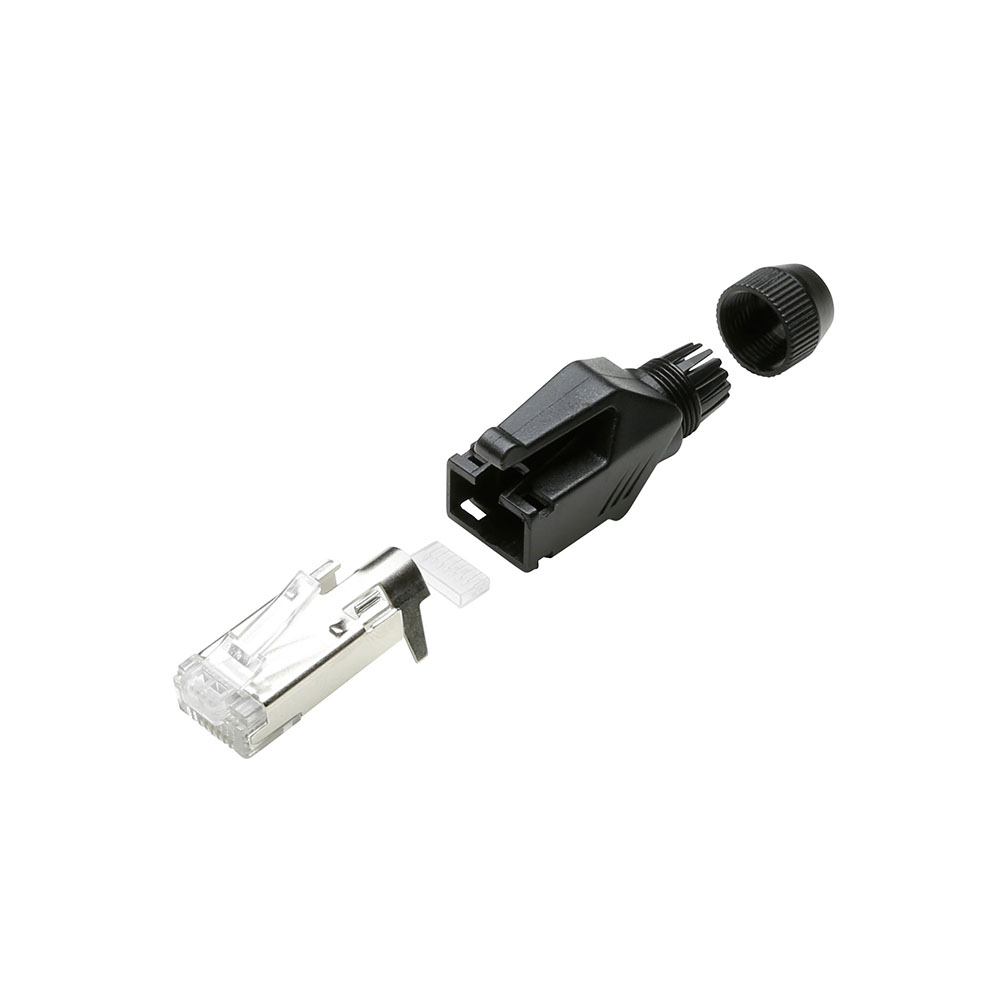 RJ45-XLR lengő ház retesszel, IP65, RJ45 csatlakozó nélkül, fekete, BULK