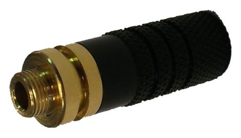 3,5 jack aljzat - sztereó, aranyozott, M4 menettel a dugóhoz rögzíthető, 4,4 mm vastag kábelhez, fekete