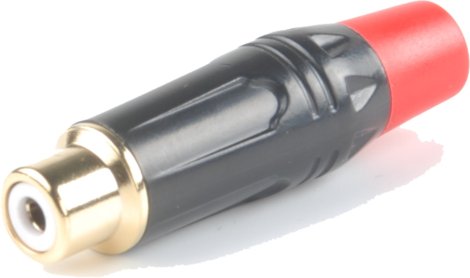 RCA aljzat - lengő, aranyozott érintkező, fekete ház, 4-6,5 mm vastag kábelhez, piros jelöléssel