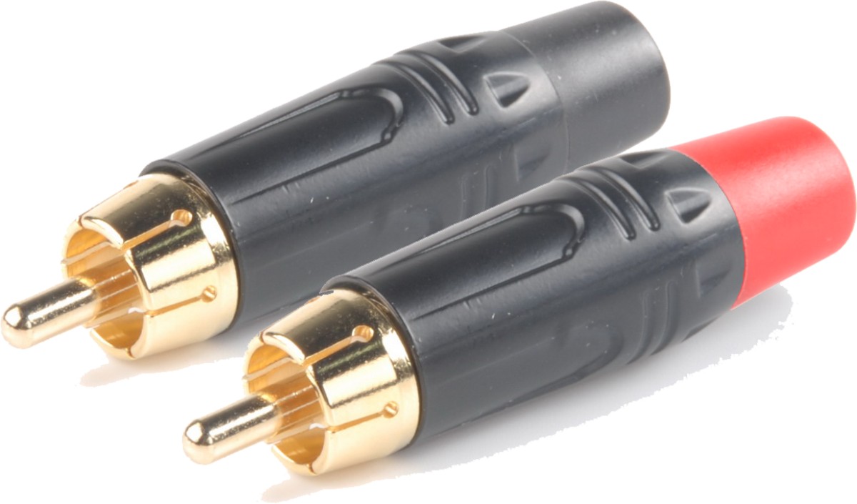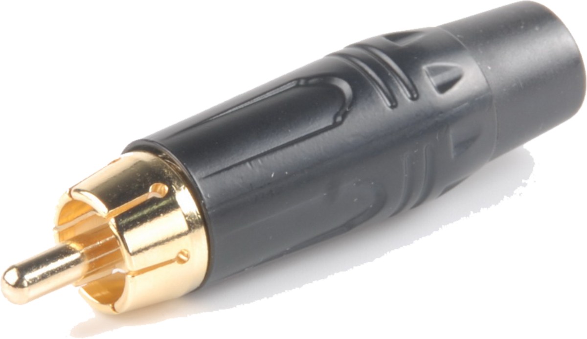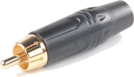 RCA dugó - lengő, aranyozott érintkező, fekete ház, 4-6,5 mm vastag kábelhez, fekete jelöléssel