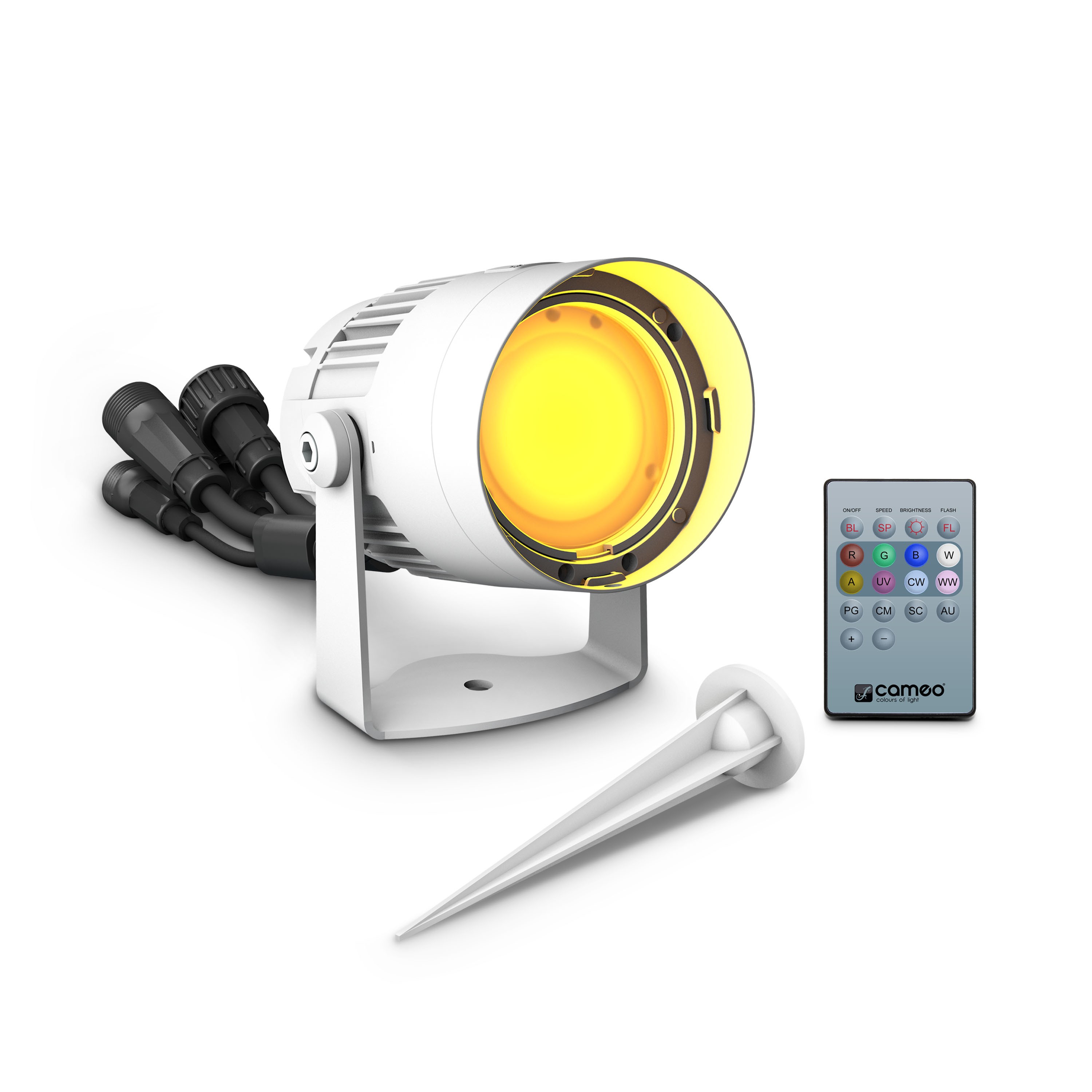 Cameo Q-Spot 40i W – kompakt kültéri, IP65 védettségű spotlámpa 40 W-os RGBA LED-del, fehér készülékházban