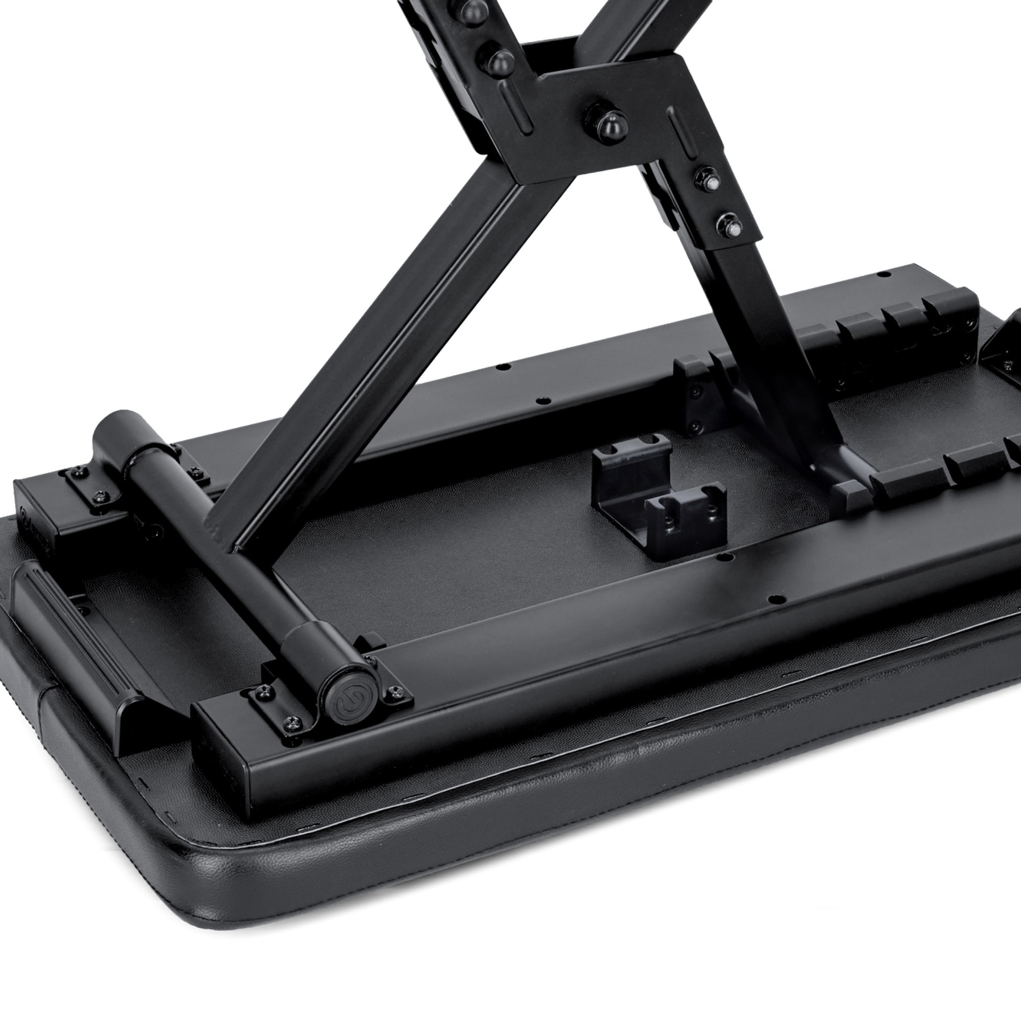 A beépített szintező egy másik nagyon hasznos elem, a csővázas talpszerkezet pedig a KS VARI®-Foot 1 nevű termékkel van felszerelve. Az egyszerű csavaros rögzítési mechanizmusnak köszönhetően a pad szilárdan és biztonságosan a helyén marad, még egyenetlen felületen is. Az FK Seat 1 csuklós mechanizmusa lehetővé teszi a szék gyors felállítását, és szállításhoz való lapos összehajtását. Így a rakodás során gyakorlatilag bármilyen helyen elfér. Röviden, az FK SEAT 1 zongoraszék a legkülönbözőbb alkalmazásokhoz is megfelel!