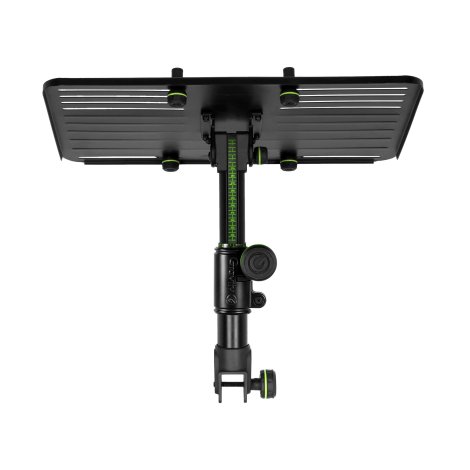 A praktikus, állítható tartótüskékkel ellátott laptop tálca kibővíti a Gravity® DJ asztal (FT 01) funkcionalitását és biztosítja a laptopra való legjobb rálátást.