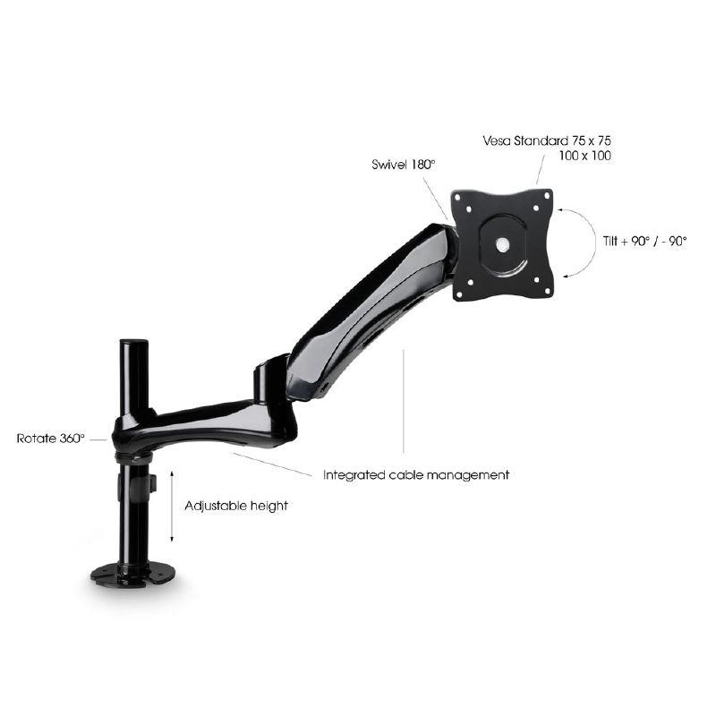 Az SA 6131 B elegáns acél és alumínium öntvény konstrukciójú monitor képernyő tartó kar. Minden irányban állítható, zseniális ellensúly kialakítással rendelkezik a könnyű magasságállítás érdekében. A belső kábel elvezetés letisztult megoldást biztosít. A monitortartó furatokkal, vagy szorító kengyellel (mellékelve) biztonságosan rögzíthető.