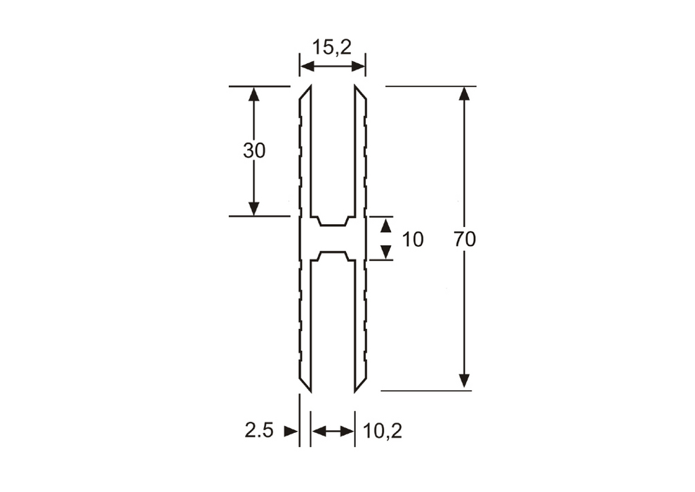 lemez toldásokhoz, 10 mm - 70/30x2,5 mm
