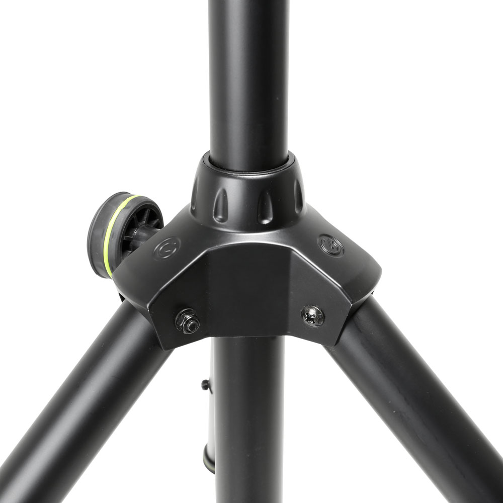 Az alumínium öntvényből készült lábazat kiemelkedő terhelhetőséget és élettartamot biztosít. A magasságállító bilincs acélból készült, gyakorlatilag elnyűhetetlen. Biztonsági tüskével látták el, hogy a toldócső minden körülmények között a helyén maradjon.