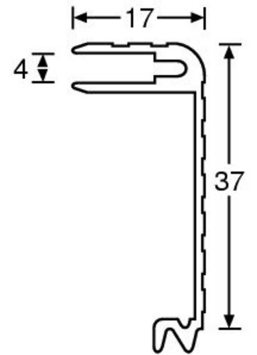 ajtóprofil 4 mm mm-es anyaghoz, 37x17x1,2 mm