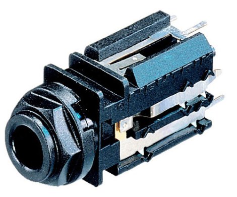 6,35 mm monó aljzat, beépíthető, 2-szeres kapcsoló, M műanyag ház, műanyag rögzítő
