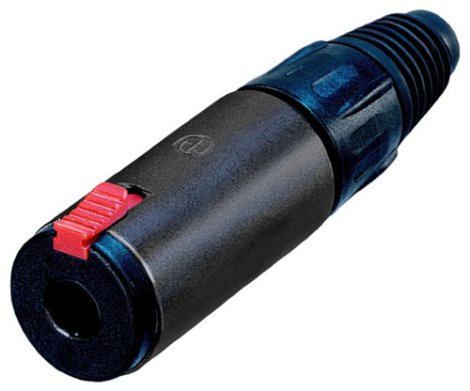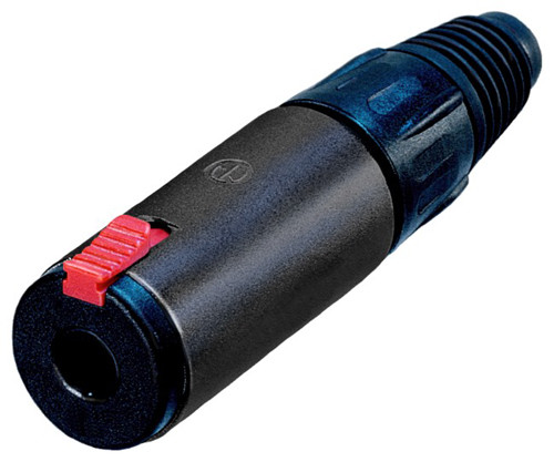 6,35 mm sztereó jack aljzat, lengő, reteszes, fekete ház