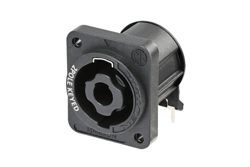 speakON 2 pólusú hangfal csatlakozó beépíthető, vízszintes nyákhoz, önmetsző (A) csavar lyukakkal, D ház