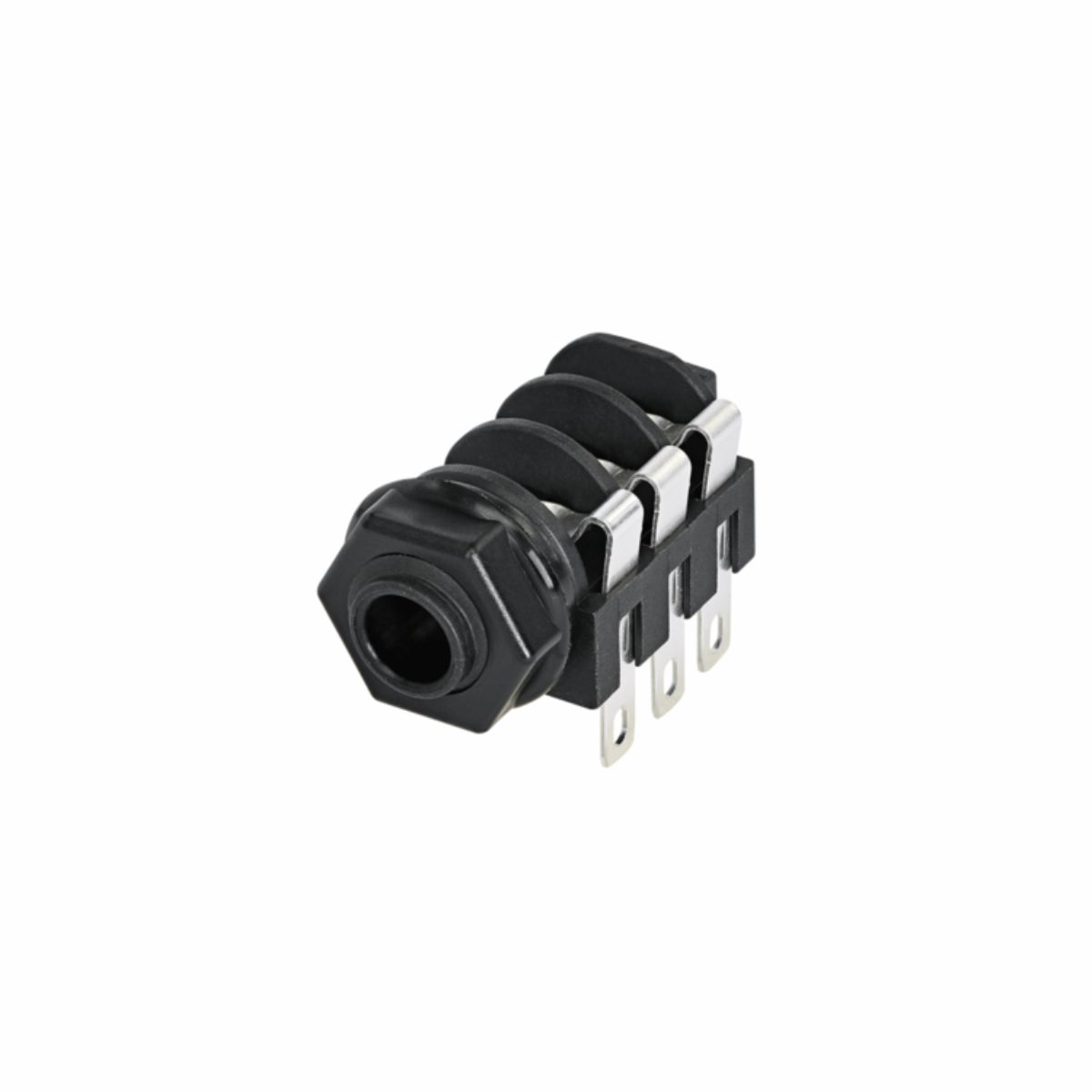 6,35 mm sztereó aljzat, beépíthető, 3-szoros kapcsoló, M műanyag ház, műanyag rögzítő,