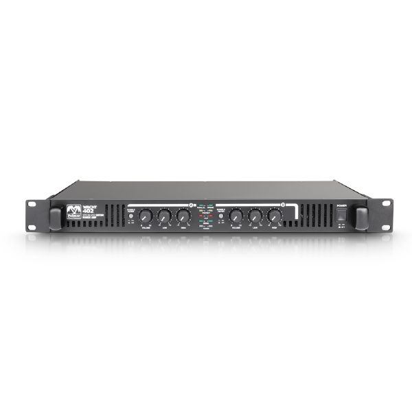 A Palmer Macht 402 rackbe szerelhető 19”-os végerősítőt kifejezetten gitáros alkalmazásokhoz fejlesztették ki. Csatornánként 200 W teljesítményt présel ki magából (hídba kapcsolva 400 W) , gyakorlatilag bármilyen hangfalat meg tud hajtani. A készülék nagy hatásfokú kapcsolóüzemű tápegységgel és alacsonyzajú ventilátorral rendelkezik, a lágy indítású D-osztályú erősítő túlfeszültség, egyenáram, rövidzár és túlmelegedés ellen védett.