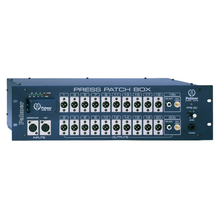 A Press Patch Box az audió elosztók egy speciális változata, kifejezetten sajtókonferenciákon való felhasználásra. Külön bemenetet kínál a mikrofon- és vonaljelek (keverőpult kimenetéről) fogadására. Kiváló minőségű bemeneti erősítő leválasztó transzformátoros csatlakozókkal biztosítja a széles dinamika tartományt. Összesen 20 szimmetrizáló trafóval ellátott XLR kimenet hozzávaló meghajtó áramkörrel teszi lehetővé videokamerák, vagy egyéb felvételi eszközök csatlakoztatását. A névleges kimeneti szint +4 dBu 600 ohmon. A 19. és 20. csatornának sztereó jack aljzatai vannak szimmetrikus és aszimmetrikus jelekhez és RCA csatlakozót (-10 dBu) is találunk itt. Ha húsznál több csatornára van szükség, további PPB 20-akat fűzhetünk össze a hátoldalon található bus in/out csatlakozó segítségével. A jelet 10 LED-ből álló kivezérlés jelzőn ellenőrizhetjük -40 és +10 dB között (0 dB a kijelzőn 4 dBu kimeneti szintet jelöl), valamint a hangerőszabályzóval ellátott fejhallgató kimeneten. A PPB 20 beépített árnyékolt hálózati tápegységgel rendelkezik. Egy külön DC bemenet lehetővé teszi tartalék (akkumulátoros) áramforrás használatát is. A PW 4 megfelelő erre a célra.