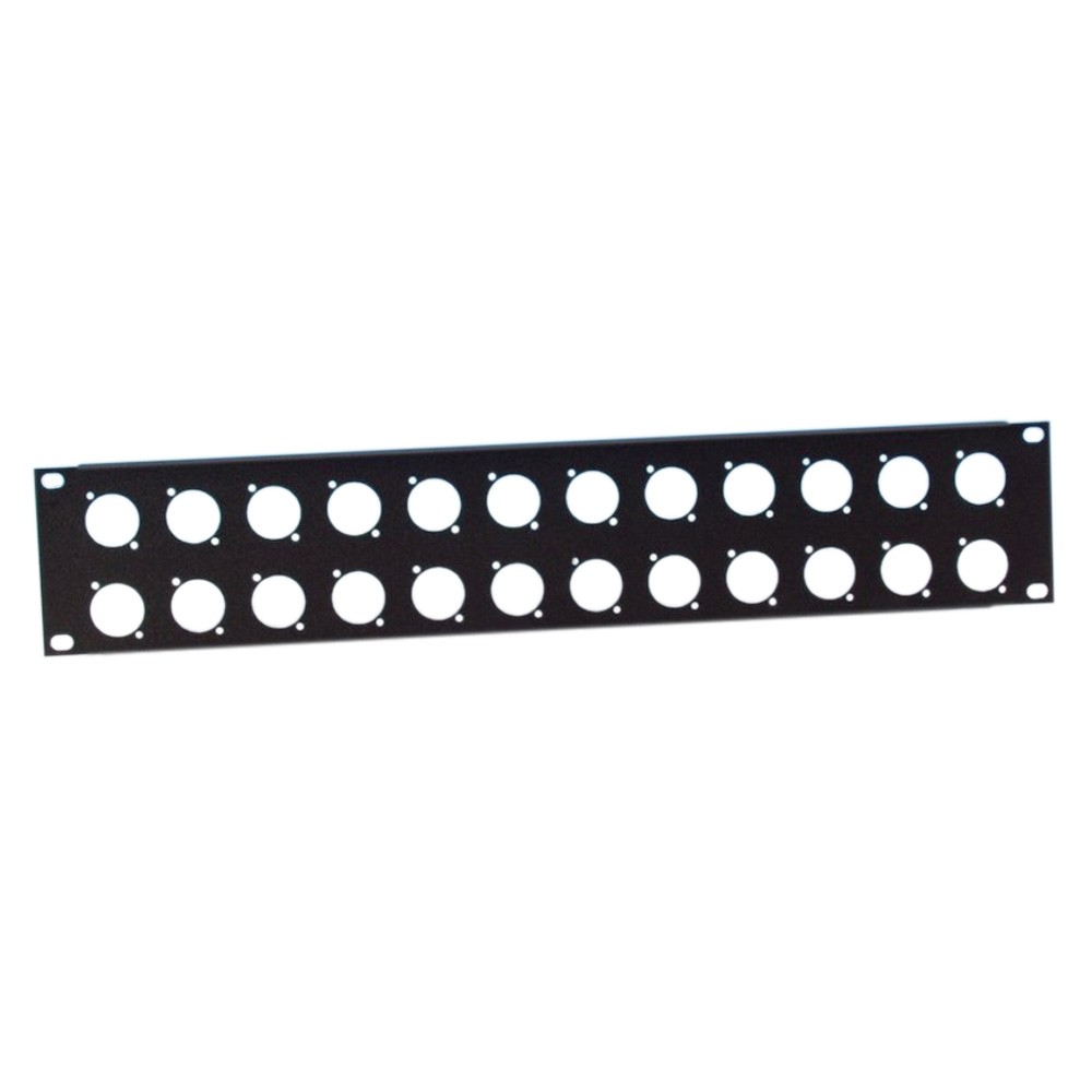 19"-os furatozott vas előlap, 2 U, 24 x XLR D furat, fekete