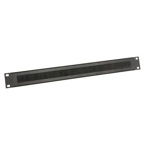 U-alakú hajlítással merevített rack előlap kefecsíkkal, csatlakozók, kábelek átvezetésére.