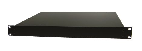 rack doboz 1U/250 mm, a tetőn szellőzőnyílásokkal, feketére festve
