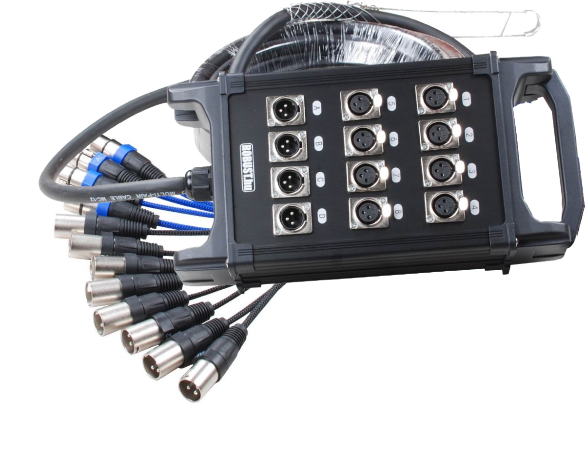 Az egyeztetés során a kábel típusa, hossza és a Neutrik csatlakozók típusa szabadon határozható meg. A kiválasztott Neutrik csatlakozókat a porszórással feketére festett, kényelmes fogantyúval ellátott erős mechanika védi a színpadi viszontagságoktól. A legyező védelméről Flexo harisnya és acél tehermentesítő gondoskodik. A boxon lévő felirati mező illetve a lengő csatlakozókra szerelt jelölő gyűrűk a csatornák azonosítását segítik.