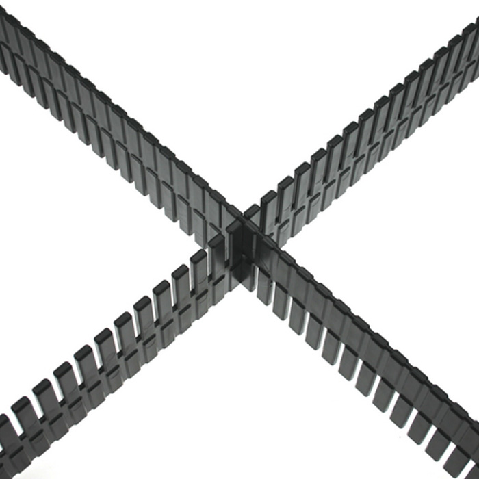 Univerzális válaszfalak 2 U vagy nagyobb rack fiókokhoz, vagy bármilyen fiókhoz (iroda stb.), legalább 70 mm belső magassággal. Könnyen a kívánt hosszra vágható és egymásba illeszhető.