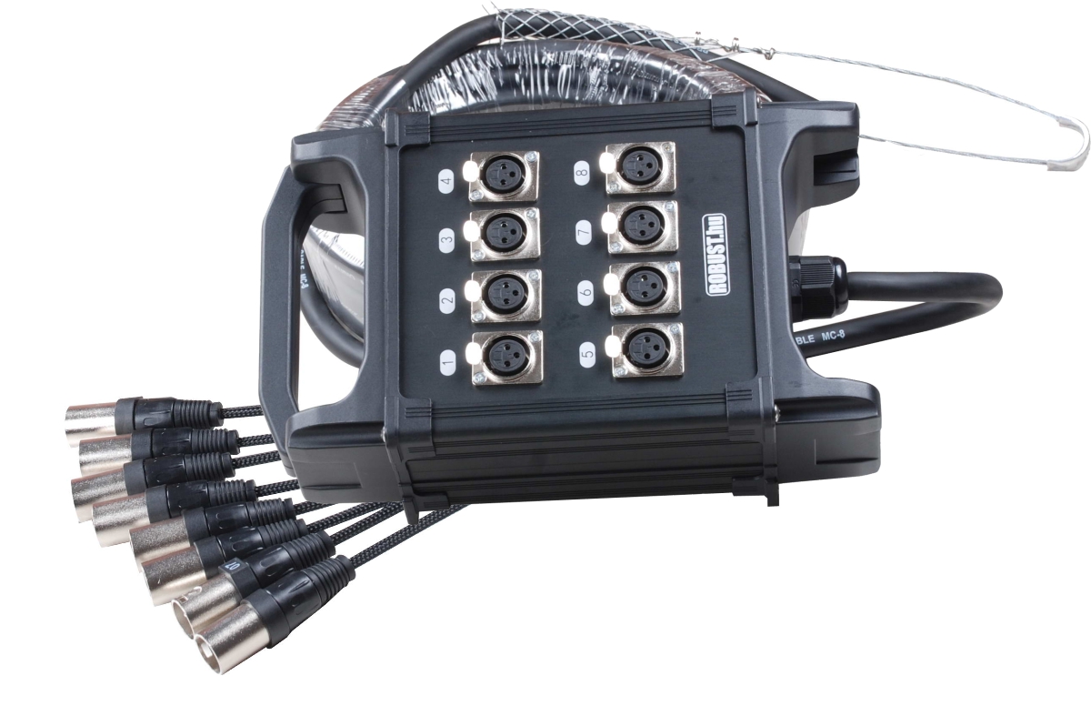 Az egyeztetés során a kábel típusa, hossza és a Neutrik csatlakozók típusa szabadon határozható meg. A kiválasztott Neutrik csatlakozókat a porszórással feketére festett, kényelmes fogantyúval ellátott erős mechanika védi a színpadi viszontagságoktól. A legyező védelméről Flexo harisnya és acél tehermentesítő gondoskodik. A boxon lévő felirati mező illetve a lengő csatlakozókra szerelt jelölő gyűrűk a csatornák azonosítását segítik.