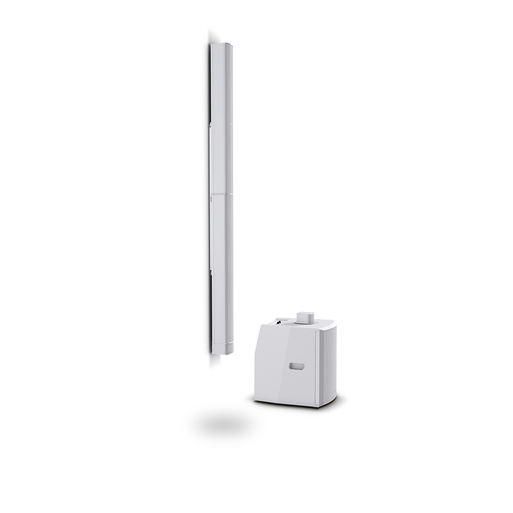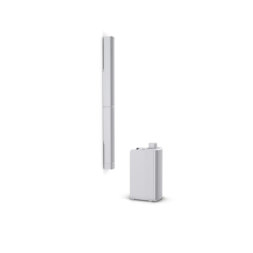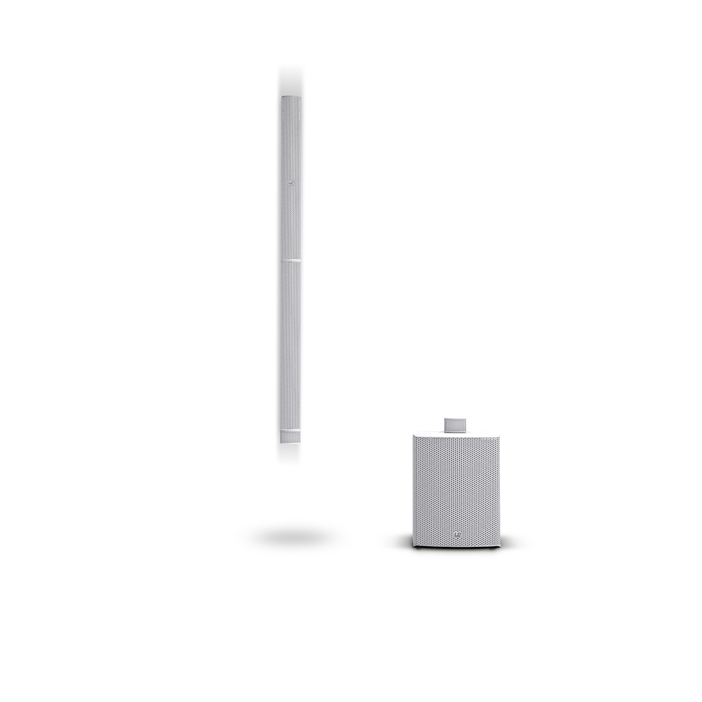 A készlet tartalmaz továbbá két adaptert a sokpólusú rendszercsatlakozókhoz, amelyekkel összefűzhető az oszlop és a mélynyomó.