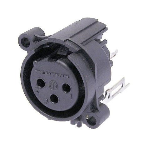 3 pólusú XLR aljzat vízszintes nyákhoz, külön GND és ház érintkezővel, reteszes A ház